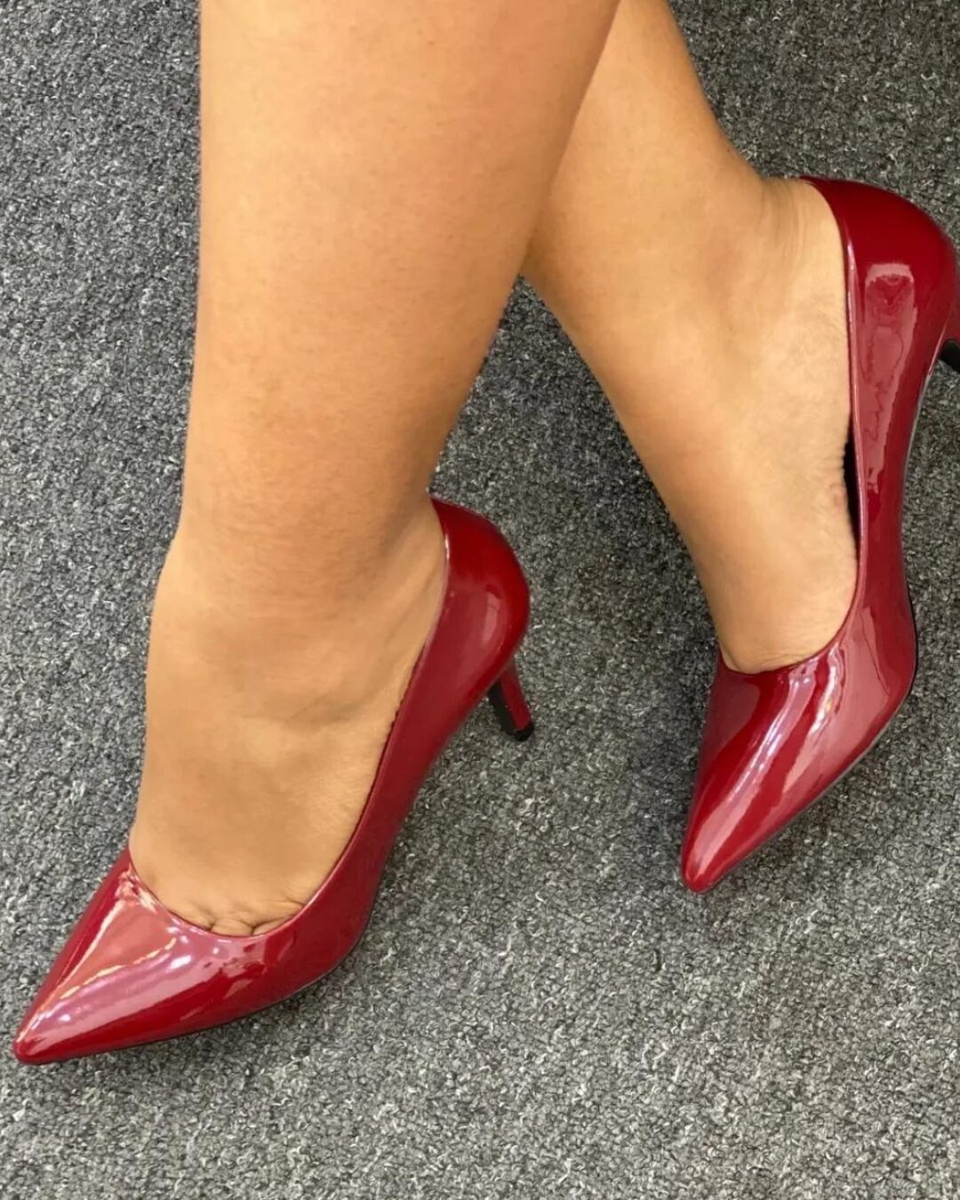Elevate your style with these Patent Leather Wine kitten Pumps . Designed for timeless elegance, these heels feature a sleek pointed toe and a high-gloss finish, adding a sophisticated touch to any outfit.